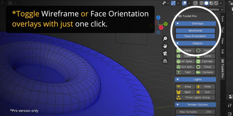 - Toggle Wireframe Overlay (Pro only)
